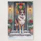 Share festive cheer with this elegant Christmas card featuring a regal Beauceron beside a rustic decorated porch. Painted in a gentle watercolor style with soft lantern light and drifting snow, this winter scene is perfect for dog lovers seeking a warm, seasonal touch. The blank interior allows space for personal messages, making it great for holiday greetings, thoughtful gifting, and breed-themed stationery fans.