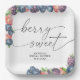 Watercolor berries theme bridal shower card featuring watercolor illustration of strawberries, blueberries, blackberries. Elegant calligraphic handwriting, which is perfect for spring, summer or autumn weddings. Matching items available.