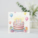 Watercolor Birthday Cake with Candles and Balloons Card
