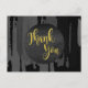 A beautiful rose gold letter saying thank you on black striped lines post card is very elegant and classic to thanks your guests.