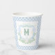 Watercolor Blue 1st Birthday Monogram Crest Party Paper Cups