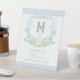 Watercolor Blue 1st Birthday Monogram Crest Party Pedestal Sign
