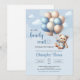 Watercolor blue and brown teddy bear with balloons invitation
