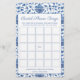 A Bridal Shower or Baby Shower Bingo Game Card design. It features my own handpainted watercolor pattern, inspired by the kind you can see on antique ginger jars. All of the text is fully customisable to your needs.