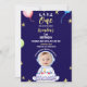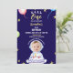 Watercolor Blue Astronaut With Cake 1st Birthday Invitation
