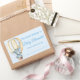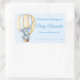 Watercolor Baby Elephant on Hot Air Balloon Baby Shower Bookplate Labels. Blue Text.