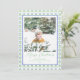 This beautiful Christmas Photo Card features watercolor blue bows, golden jingle bells and blue frame for one photo. It is perfect if you are looking for classic, southern, grandmillenial Christmas photo card.