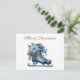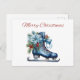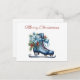 Watercolor Blue Christmas Ice Skate with Ribbon Holiday Postcard