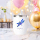 This lovely blue dragonfly wine tumbler features my original watercolor art, painted originally on paper with paints and brushes for a bold, timeless look. The vibrant insect art design, paired with a customisable name in stylish retro script typography, adds a unique touch perfect as a gift to any lover of nature and wildlife, or for any celebration.