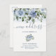 This trendy new address postcard features pretty watercolor flowers in soft shades of blue, with green botanical leaves, and handwritten script typography, on a white background. You can add a personal message to the back, or leave blank.