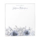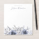 Elegant modern floral notepad featuring dusty blue whimsical watercolor flowers like roses, anemones and foliage with handwritten calligraphy.