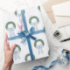 Watercolor Blue Gingham Sash Wreath Wrapping Paper
