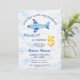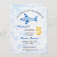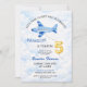 Watercolor Blue & Gold Airplane 5th Birthday Invitation