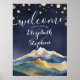 Watercolor Blue Gold Foil Mountain Wedding Welcome Poster