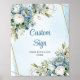 Watercolor Blue Gold Glitter Greenery Wedding Sign