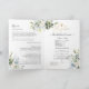 PixDezines Watercolor Greenery, Blue Gum Eucalyptus Baptism Program with luxury calligraphy script and a cross in faux gold. (LDS Baptism Program) All elements are editable, copy and paste.