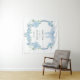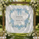 Watercolor Blue Hydrangea Crest Wedding Tapestry. Celebrate your special day with this enchanting watercolor wedding sign, featuring a delicate blue hydrangea wreath and a flowing ribbon accent and croquet dusty blue bow. This timeless piece is perfect for adding a touch of rustic elegance to your wedding decor and makes a beautiful piece of wall art for your home to remind you of your special day. The charming chic watercolor design captures the beauty of nature, making it a memorable backdrop for your wedding ceremony or reception. Add the custom bride and groom's names and wedding date to your wedding tapestry. It’s a beautiful way to showcase your names and wedding date, creating a personalized focal point that guests will admire. This exquisite wedding welcome sign will be a cherished keepsake long after you say 'I do'.