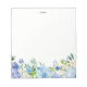 An elegant and whimsical notepad featuring blue and purple watercolor hydrangeas, peonies, anemones, and foliage. This will be a perfect feminine accent for your office.