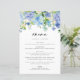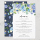 Watercolor Blue Hydrangeas Wedding Menu Card
