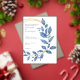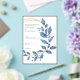 This elegant wedding invitation features a delicate watercolor design of blue leaves, complemented by shimmering gold accents. Perfect for a modern or whimsical wedding, this custom invitation is sure to impress your guests. The soft color palette and intricate details create a sophisticated and memorable impression, making it ideal for a unique and stylish wedding celebration.