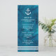 This nautical style wedding menu features a trendy watercolor blue background, and white stripes with a matching white anchor.