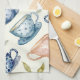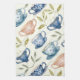 watercolor blue pink tea cups pattern towel