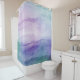 Trendy watercolor shower curtain with an abstract painting in purple, blue, teal, and aqua.