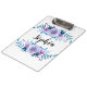Clipboard with romantic blue & purple watercolor floral wreath design and customisable name or monogram.