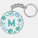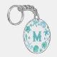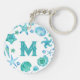 Watercolor Blue Sea Shells and Starfish Monogram Key Ring