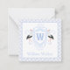 Watercolor Blue Stork Gingham Monogram Crest Card