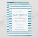 Watercolor Blue Stripes Simple Baby Shower Invitation