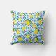 Watercolor Blue Tile Yellow Lemon Watercolor Cushion