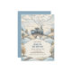 Celebrate your little one’s big day with this charming blue train birthday design, perfect for boys who love trains, locomotives, and classic storybook scenes. The illustration features a vintage steam train crossing a stone bridge, surrounded by soft watercolor hills, trees, and clouds in calming blue and neutral tones.