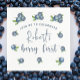 Kids birthday party! featuring watercolor illustration of blueberries with leaves. The text says "berry first".