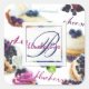 A watercolor blueberries illustration, blueberry pie, cheesecake and cupcake sweets with typography.