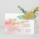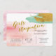 Bring your cheerful attitude to a bridal party with this watercolor blush invitation and turquoise gold accents. All information is in sans serif font with custom gold sign