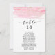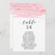 These watercolor blush and gold table number seating chart cards are perfect for a simple wedding. The luxurious feminine design features a light pink watercolor texture with a splash of faux gold glitter dust and an elegant calligraphy script font. The card prints on the front and back (double-sided).