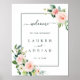 This wedding welcome sign features painted watercolor flowers in blush pink, white and green foliage with a rectangular frame. For more advanced customization of this design, please click the "Customize further" link. Matching items are also available.