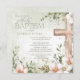 Watercolor blush pink flowers wooden cross baptism invitation