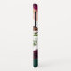 Elegant bohemian style watercolor flowers, feathers and foliage pattern in trendy shades of purple, burgundy, pink, peach and green, personalised with name, iPhone case.