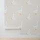 Watercolor Boho Goose White Beige Nursery Wallpaper