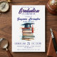 Watercolor Books and Cap Graduation Celebration Invitation