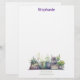 Elevate your correspondence with this Personalized Stationery Letterhead Paper featuring Purple & Green Watercolor Plant and Book Clipart. Each page showcases elegant purple and green watercolor plant illustrations and charming book clipart at the bottom, adding a professional yet artistic touch to your letters, notes, and business communication.
