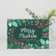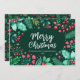 This card features hand painted watercolor foliage creating a wreath to feature your message inside. On the back of the card is a pattern of holly, pine, berries and more painted in watercolor. Customise the text. See the whole matching collection!
