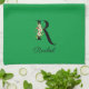 Watercolor botanical green initial monogram tea towel