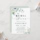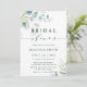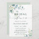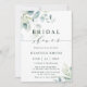 This bridal shower invitation features painted watercolor eucalyptus leaves, green foliage, and light blue leaves with stylish calligraphy. For more advanced customisation of this design, please click the Customise Further link to change font, size, and colour.