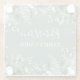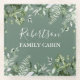 Family Name Cabin Watercolor Botanical Greenery Glass Coaster includes ivy, fern and sage leaves. Sage Green background.