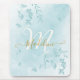 Watercolor Botanical Leaves Foliage Blue Monogram Mouse Mat