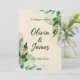 A soft and elegant watercolor invitation decorated with delicate botanical leaves.