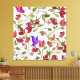 Hand drawn and watercolor bougainvillea of red flowers with butterflies in pink and blue hues.